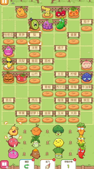 3、点击移动各个图形,让相同的水果蔬菜连在一起。