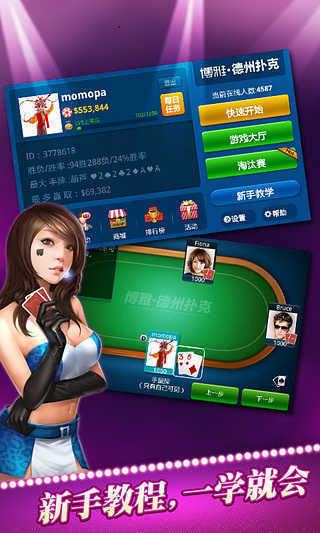 1、奢华大气的动画场景,扩宽扩大的牌桌更震撼人心,仿真模拟真正的桌牌游戏玩法;